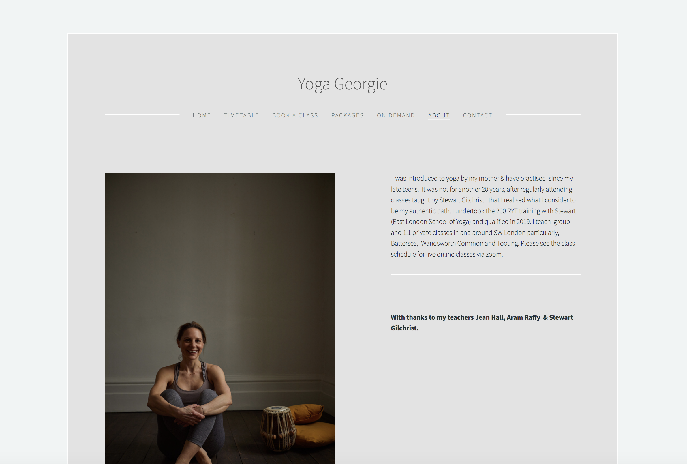 Simple and elegant website for London Yoga Instructor. The client opted to use the Squarespace platform with additional booking and calendar add-ons and bespoke css customisations. An on demand video section was also developed using Vimeo Pro.